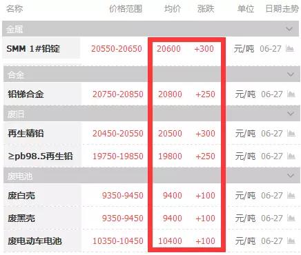 6-27 跌沒幾天,今日鉛價又大漲300元/ 均價20600元